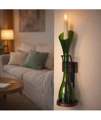 Le Bougeoir Champagne Biseau est réalisé artisanalement à partir d’une bouteille de champagne en verre vert, surcyclée et transformée à la main dans une démarche écoresponsable. Chaque pièce est unique et révèle les subtilités du travail du verre : légères variations, reflets et nuances propres à l’artisanat.