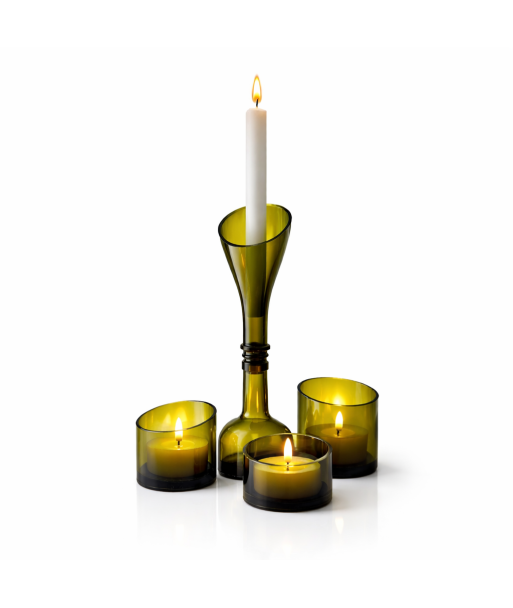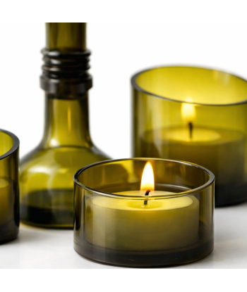 Ce bougeoir ambré est issu de la transformation artisanale d’une bouteille de vin surcyclée.