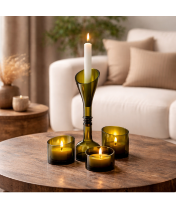Chaque création s’inscrit dans une démarche de surcyclage du verre, donnant une nouvelle utilité à des bouteilles destinées au rebut, pour une décoration plus responsable et durable.