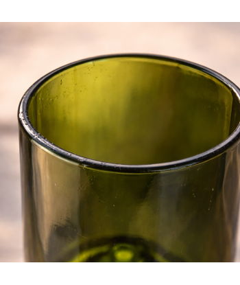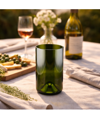 Sa forme élancée met en valeur la teinte verte naturelle du verre, issue de la bouteille d’origine, et apporte une touche élégante et contemporaine à la table.