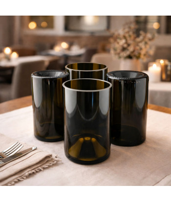 Lot de 4 verres Long Drink Cannelle, façonnés à la main à partir de bouteilles en verre surcyclées.